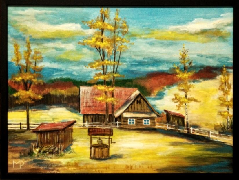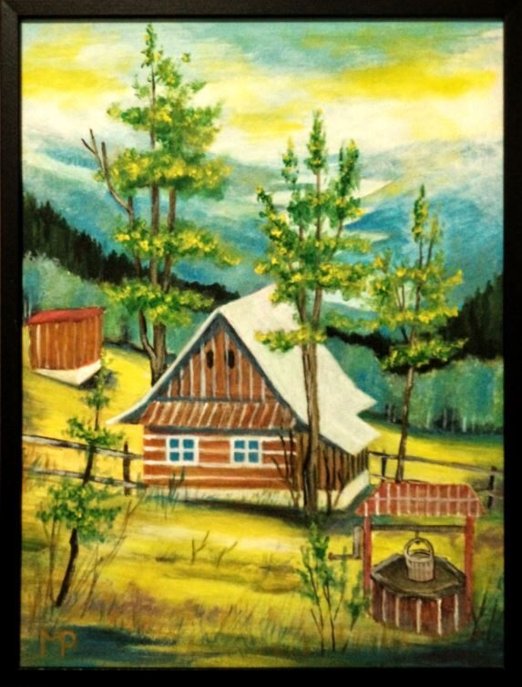 chalupa Horní Bečva, akryl, 50x70cm, karton,