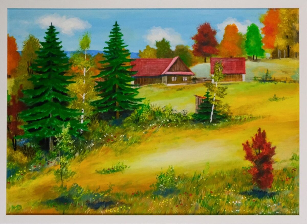 krajina Valašsko, akryl, 30x40cm, karton,