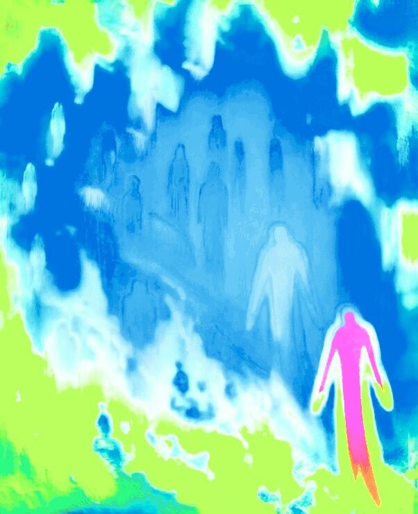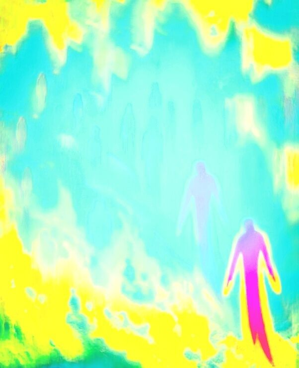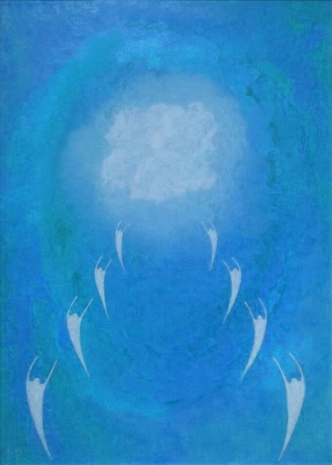 navštěvuji Nadvědomí-stav nebe, akryl, 50x40cm,karton,